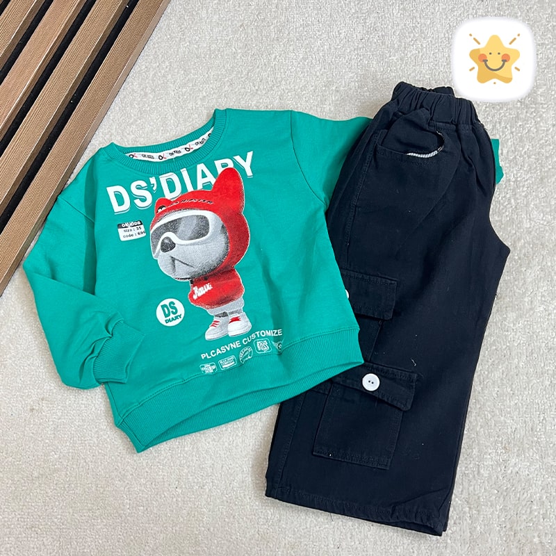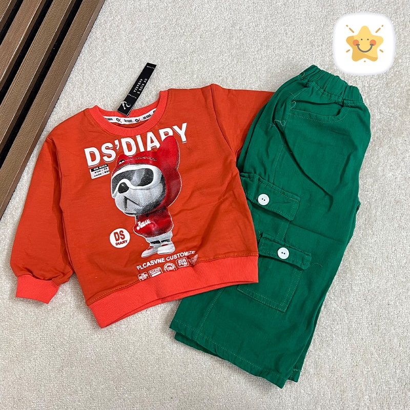 🚦 راهنمای اندازه بلوز شلوار بگ کتان ( دختر و پسر ) جنس عالی برند ok خرس عینکی مناسب 1 تا 2 سال 🚦