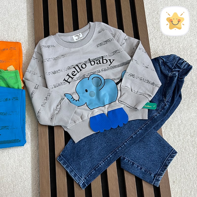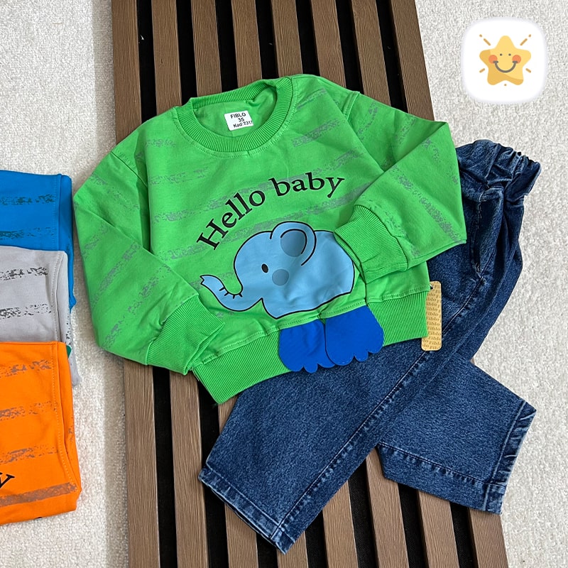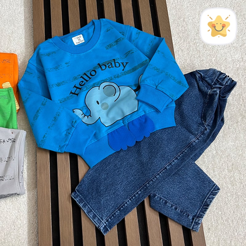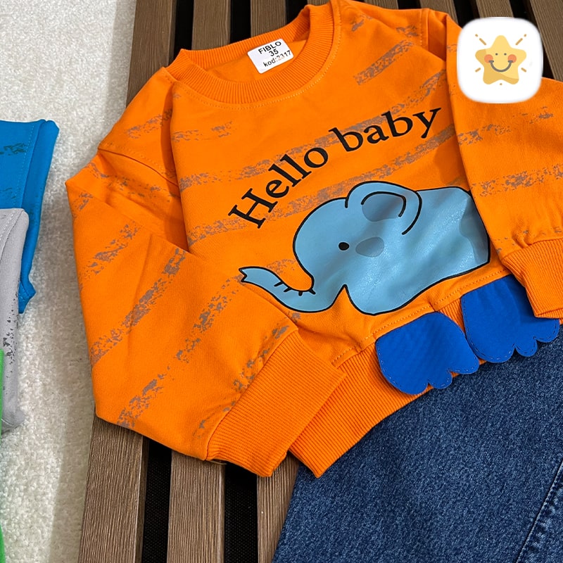 🚦 راهنمای اندازه بلوز شلوار جین پسرانه کیفیت عالی برند FIBILO طرح فیل مناسب 1 تا 4 سال 🚦
