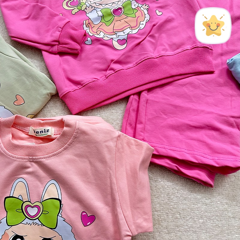 🚦 راهنمای اندازه بلوز شلوار دخترانه بگ جنس پنبه عالی لبوبو برند DENIZ مناسب 4 تا 9 سال 🚦