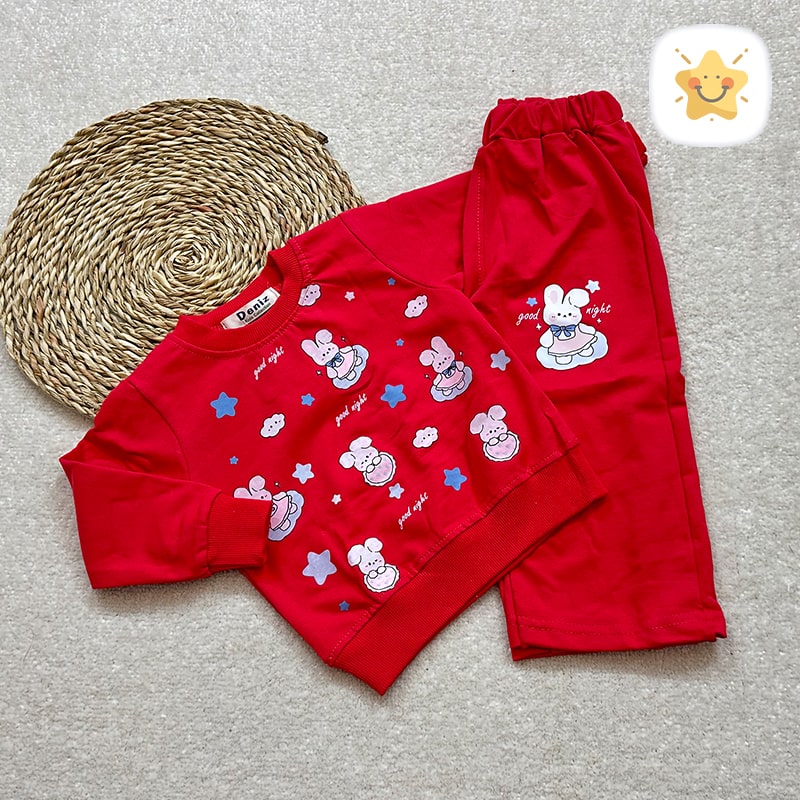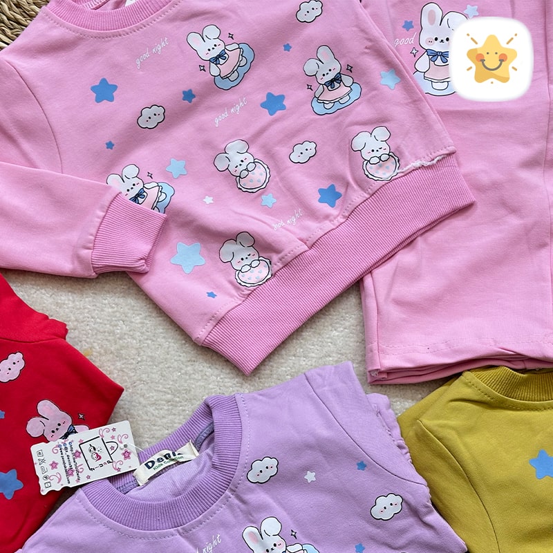 🚦 راهنمای اندازه بلوز شلوار دخترانه بگ خرگوش و ابر جنس پنبه برند DENIZ مناسب 1 تا 4 سال 🚦