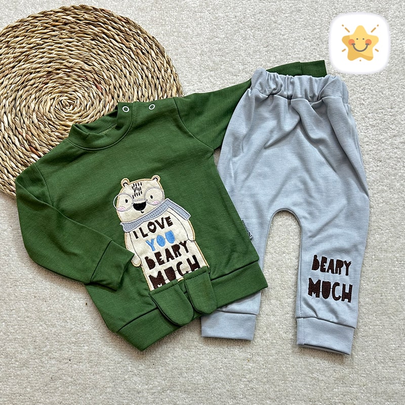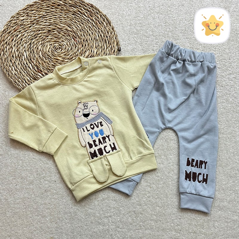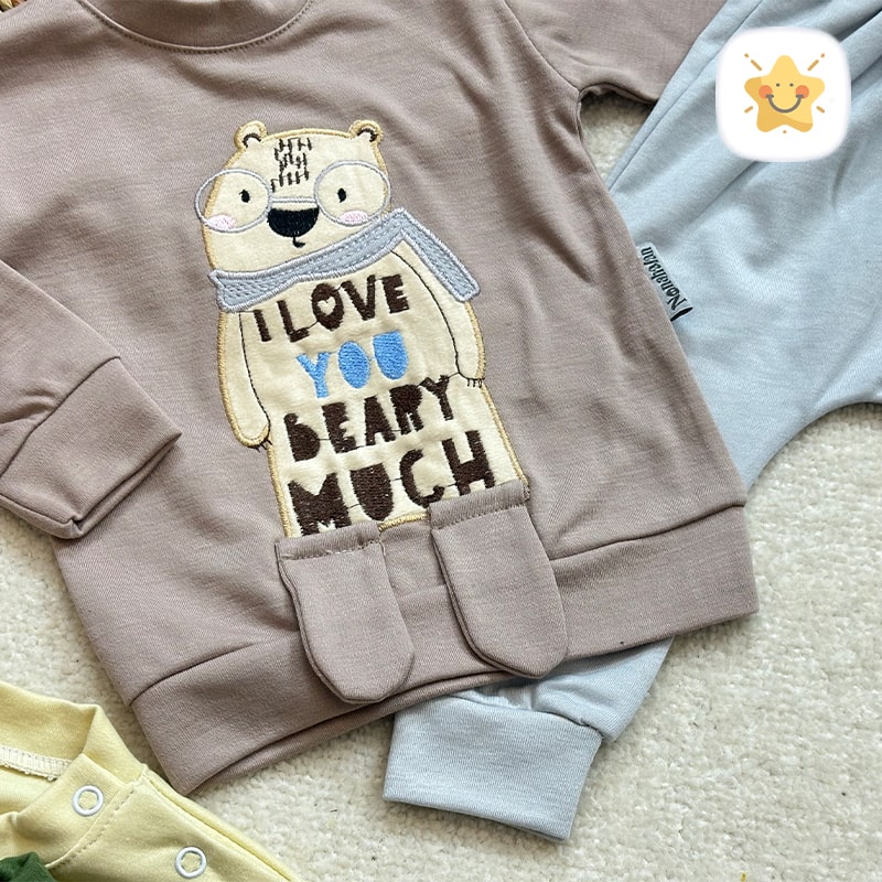 🚦 راهنمای اندازه بلوز شلوار نوزادی مدل خرس عینکی کد 0323 🚦