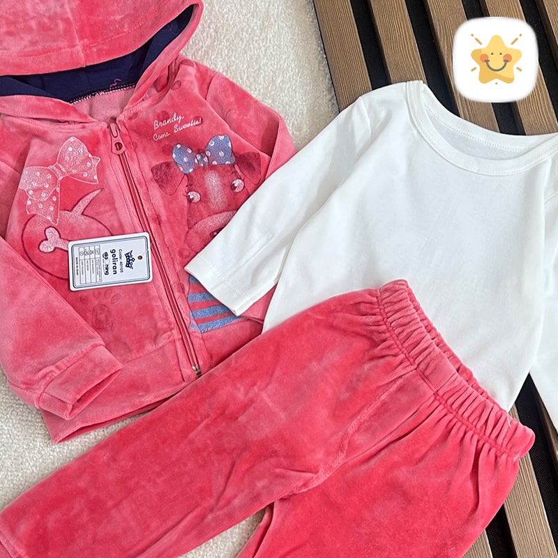 🚦 راهنمای اندازه ست 3تکه نوزادی دخترانه سویشرت + شلوار + بادی مخمل درجه یک و لطیف 🚦