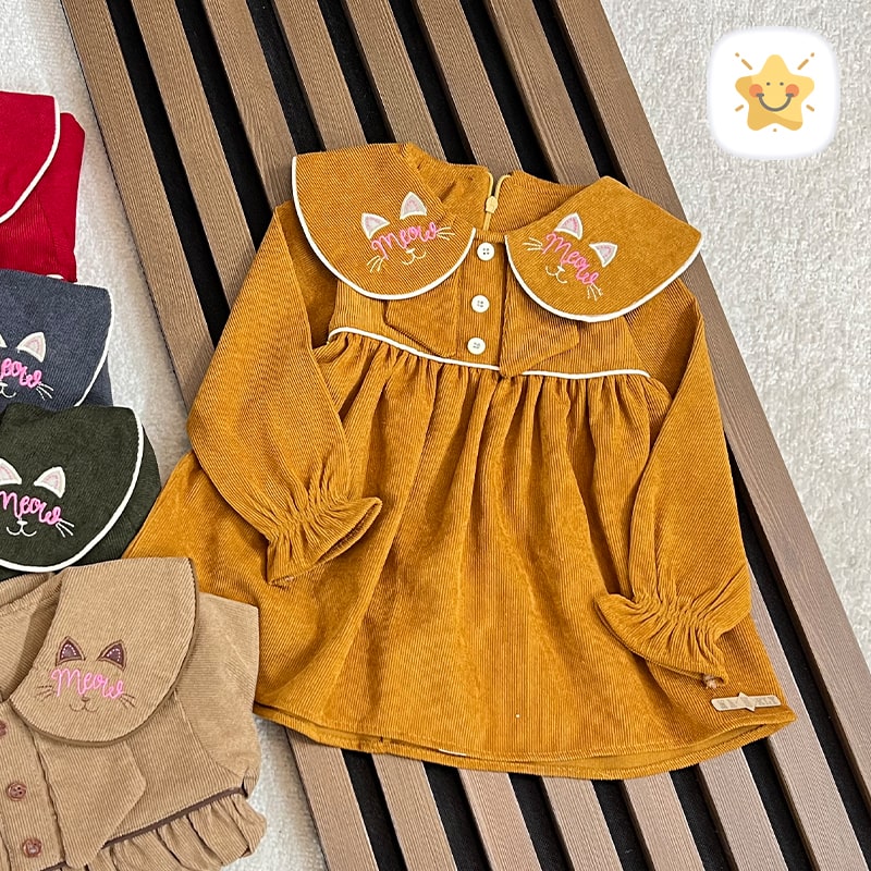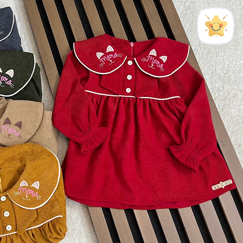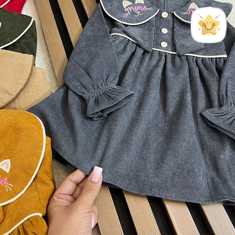 🚦 راهنمای اندازه پیراهن دخترانه مخمل کبریتی مدل MEOW MEOW برند MANELY 🚦